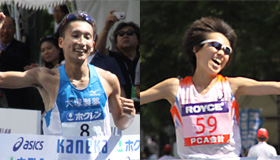 男子は招待選手の川内優輝(埼玉県庁)を含む6選手が先頭集団をつくったが、25キロすぎで川内が抜け出し、逃げ切った。2位は辻茂樹(大塚製薬)、3位は坂本隆哉(徳島市陸協)だった。